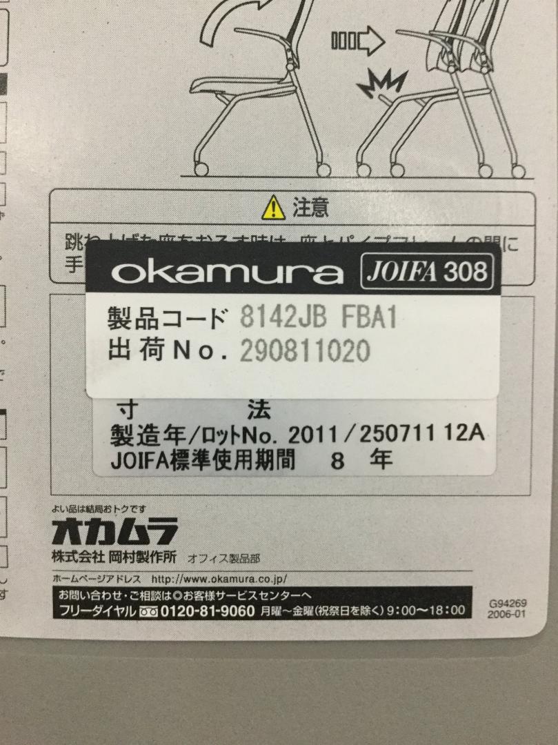 【中古】 グラータチェア 8142JB FBA1 オカムラ/okamura スタッキングチェア 227017