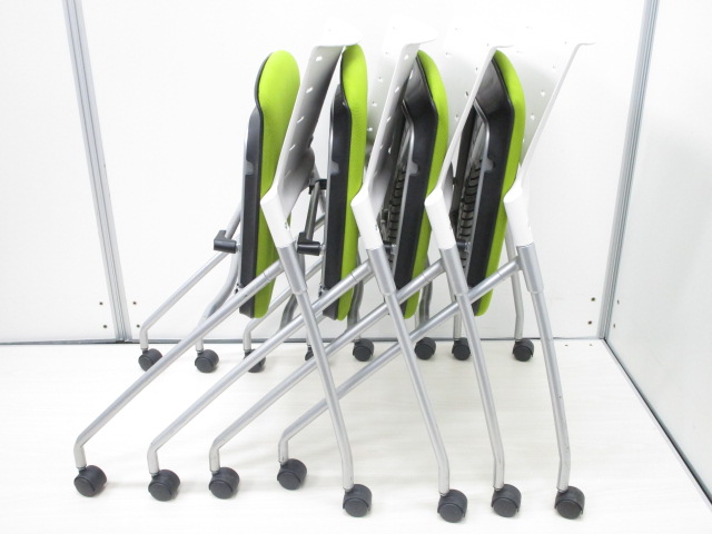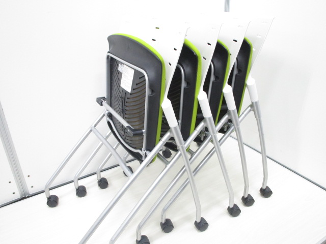 座面を跳ね上げることで水平に収納できるミーティング用チェアです!