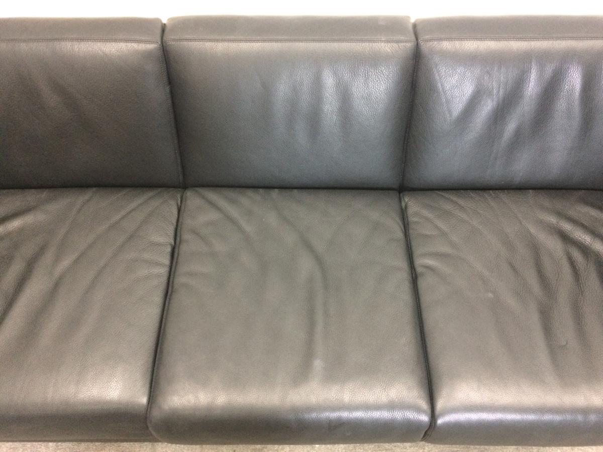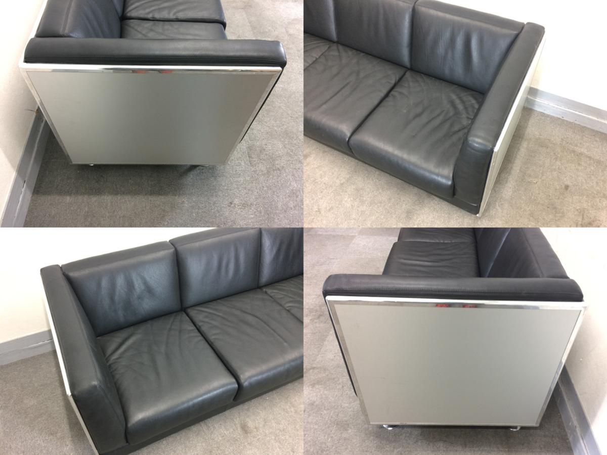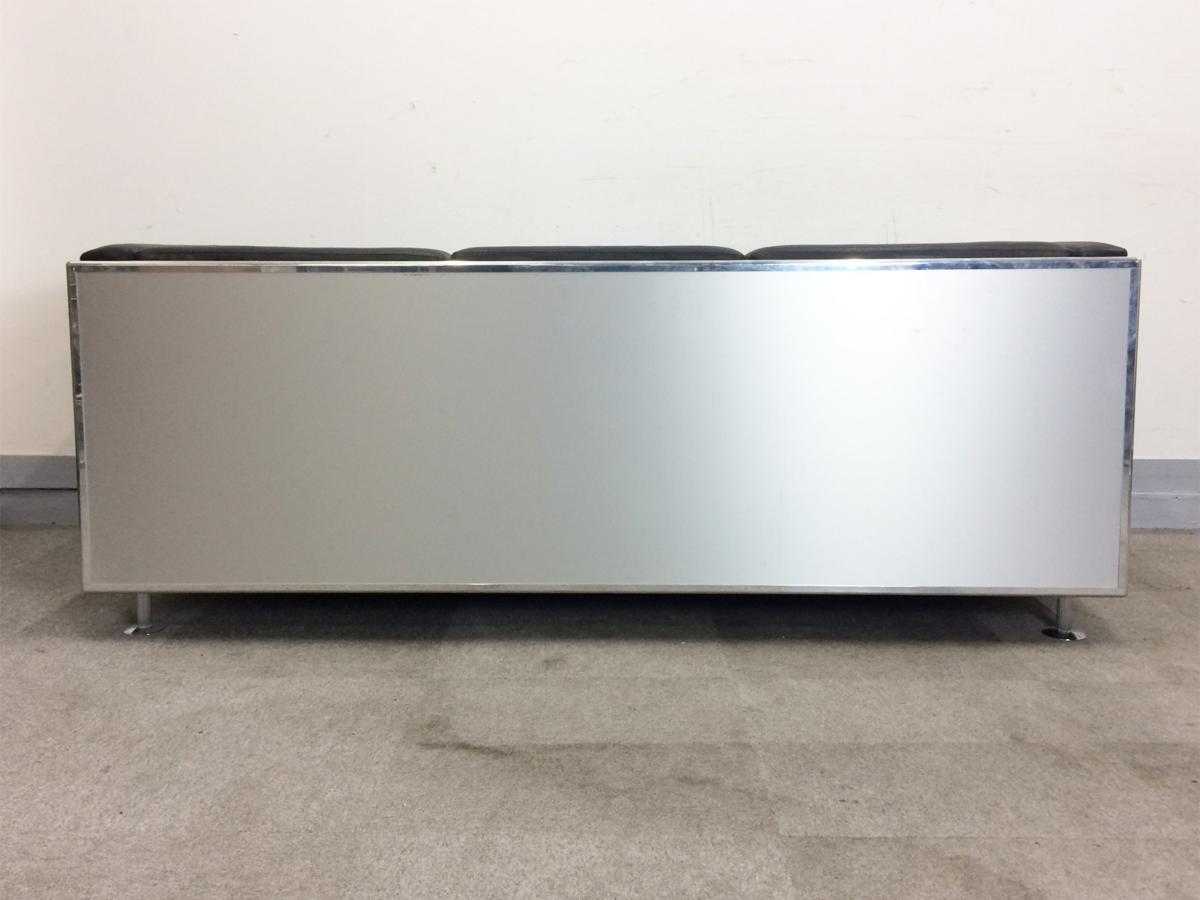 本商品は、フラットなアルミボディ、本革の背座クッション、スチールの脚で構成された、大変モダンでスタイリッシュな3人掛けソファで、上質な本革を配した、非常に高級感漂う仕上がりとなっています。