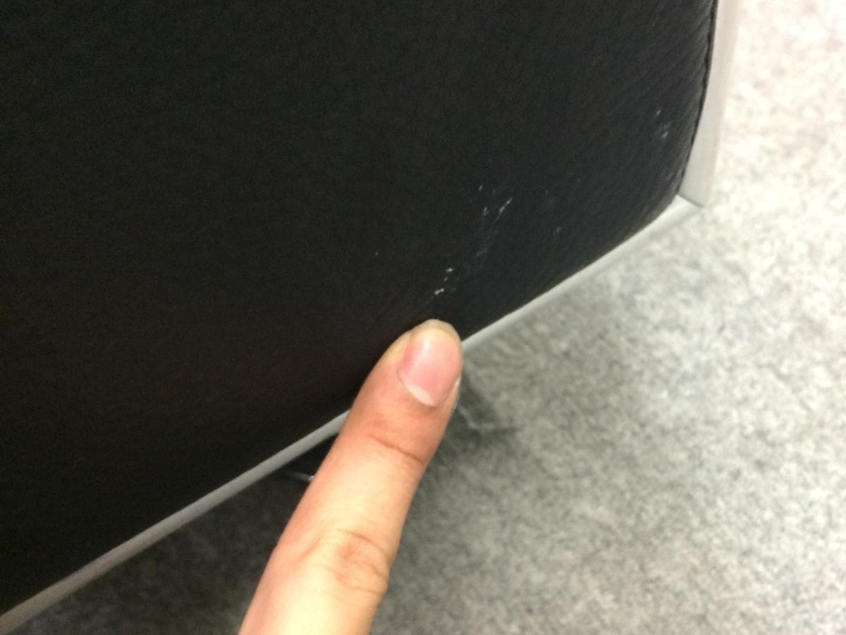 - あり黄ばみ・変色が広い範囲にうっすらある、または濃い黄ばみ・変色が一部ある。(例:三人用ソファ、二人用ソファ、一人用ソファの場合、背もたれ、肘かけ、座面等、 センターテーブルの場合、天板、脚にある。)