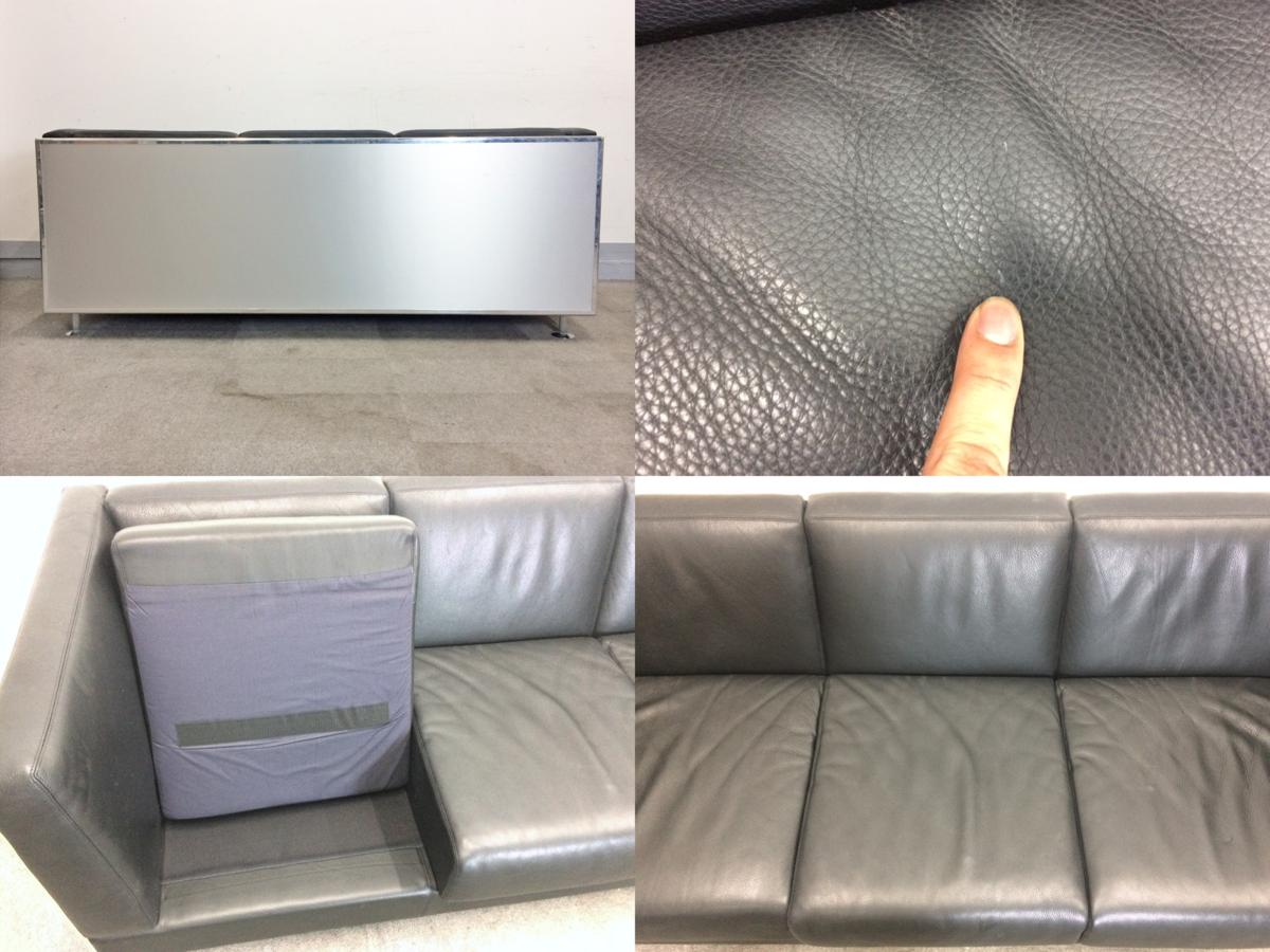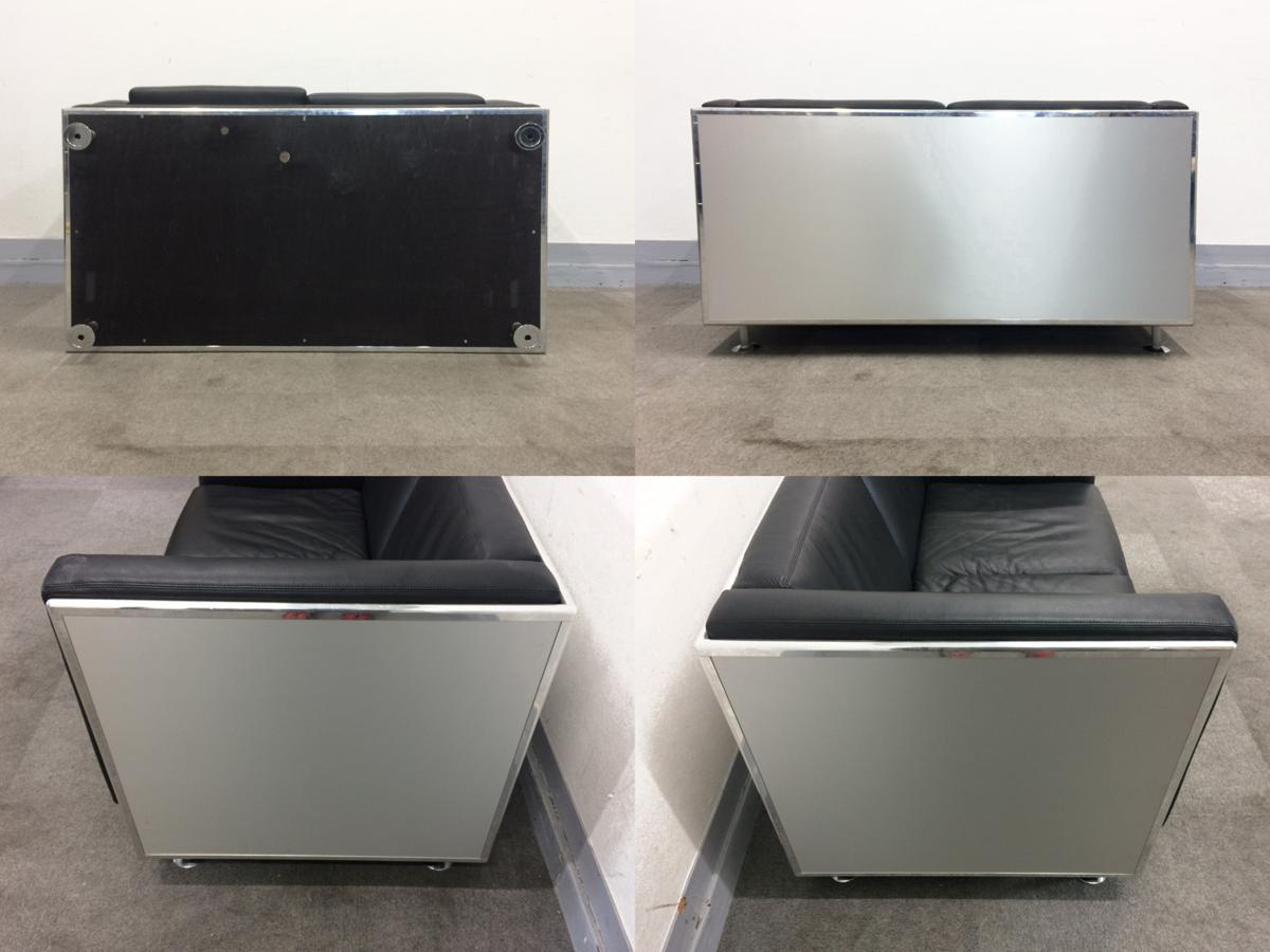 本商品は、フラットなアルミボディ、本革の背座クッション、スチールの脚で構成された、大変モダンでスタイリッシュなソファで、上質な本革を配した、非常に高級感漂う仕上がりとなっています。