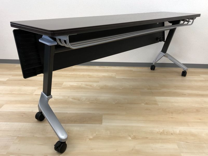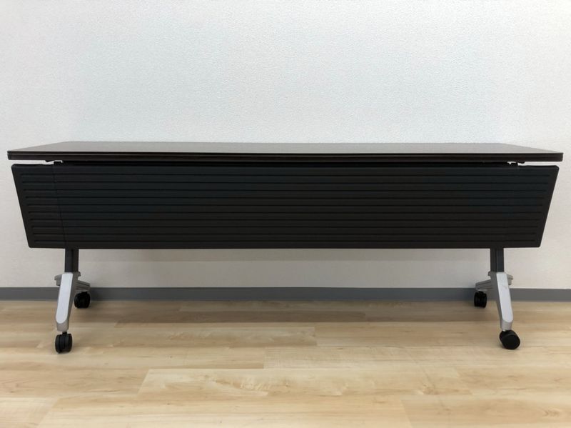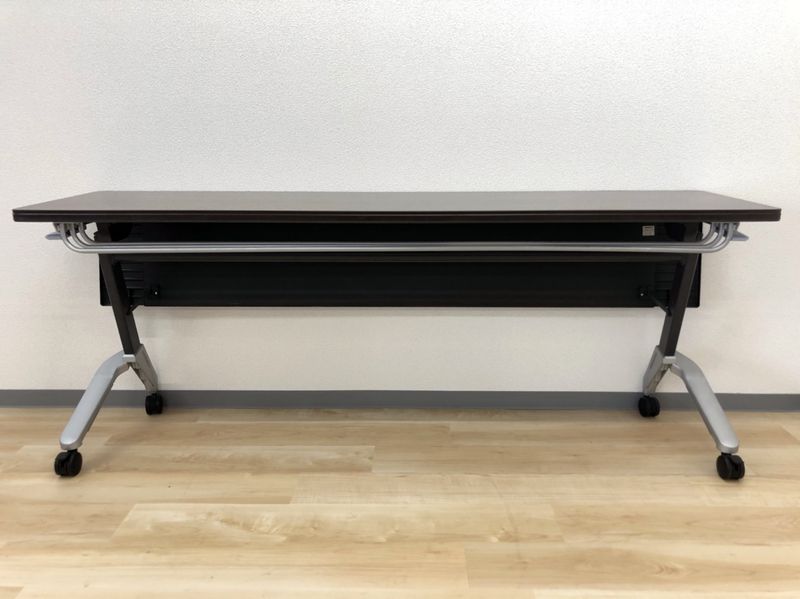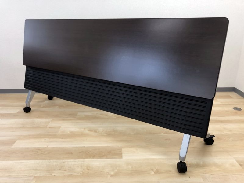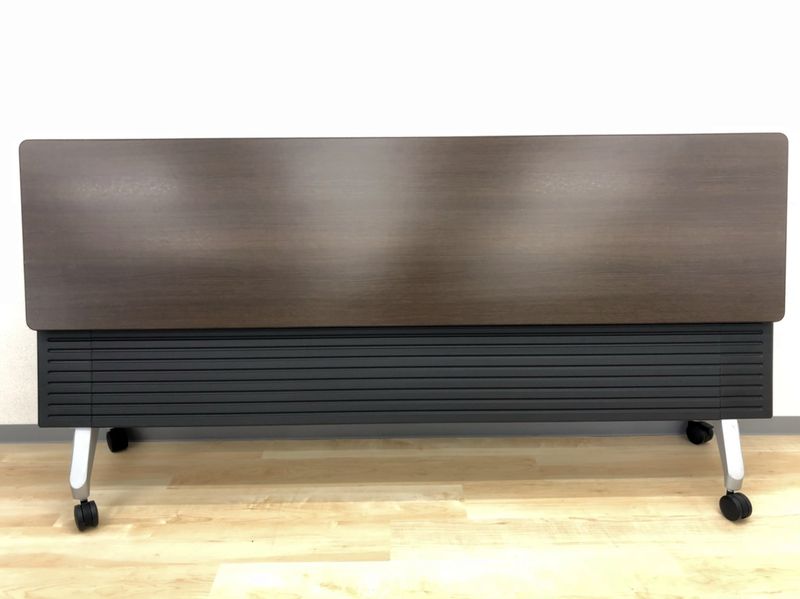 【シックなブラウン天板】【スタックテーブル・コクヨ製】会議用には整理も便利!キャスター付で転がります!- 岐阜店