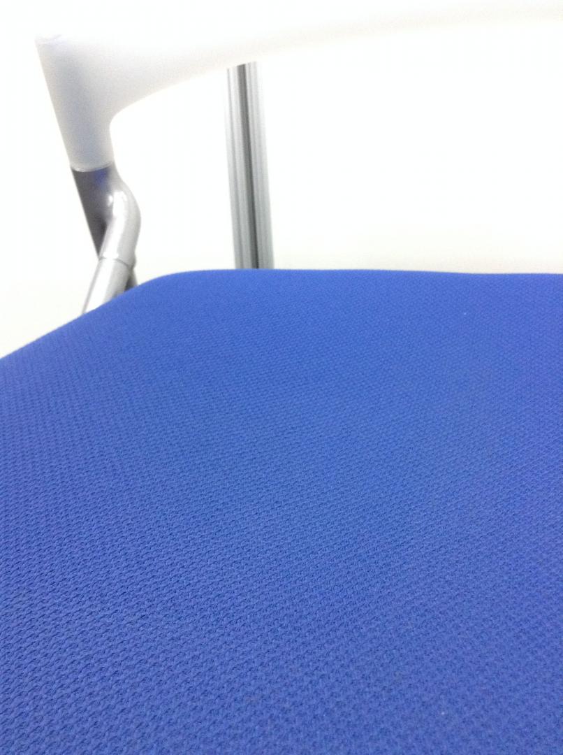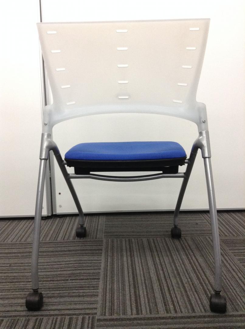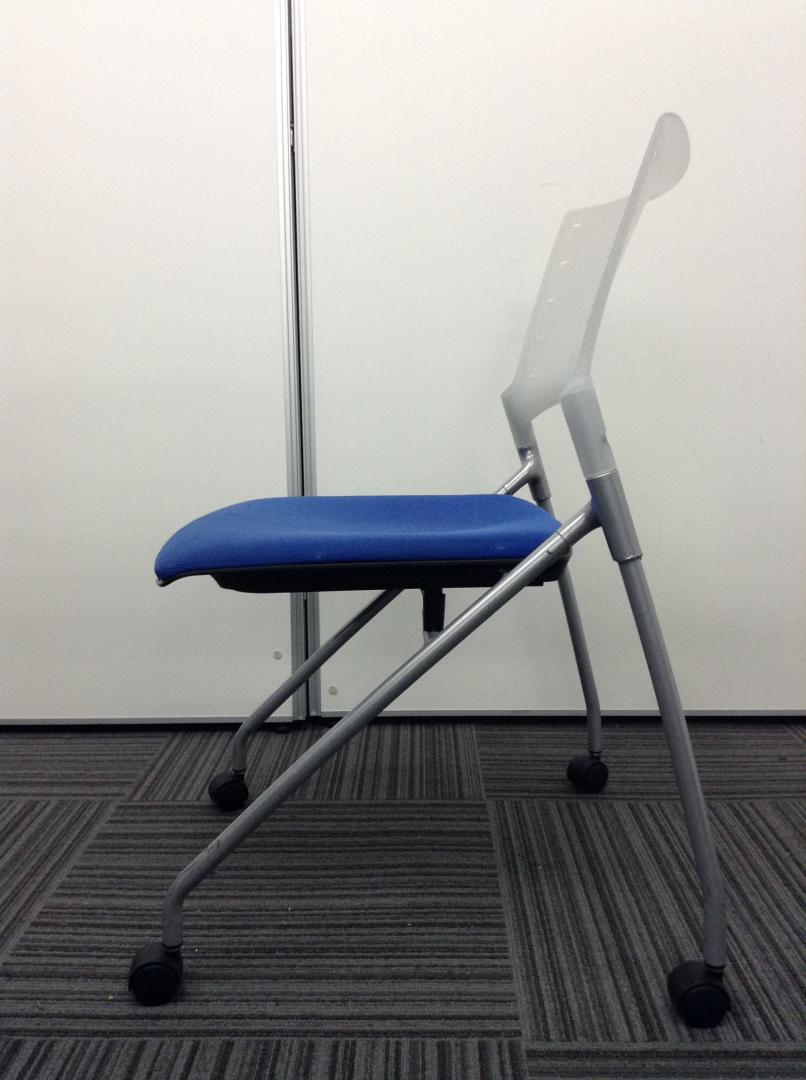 【定価6万円】【ソフトベンディングシェルが背を優しく受け止める!】■イトーキ(ITOKI) マノスチェア(MANOSS) 肘無し スタッキングチェア ミーティングチェア ■背パッド付 ■キャスター脚 ■ブルー