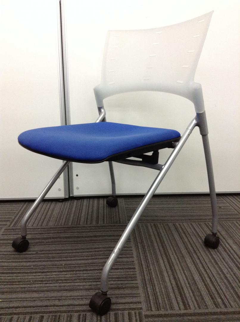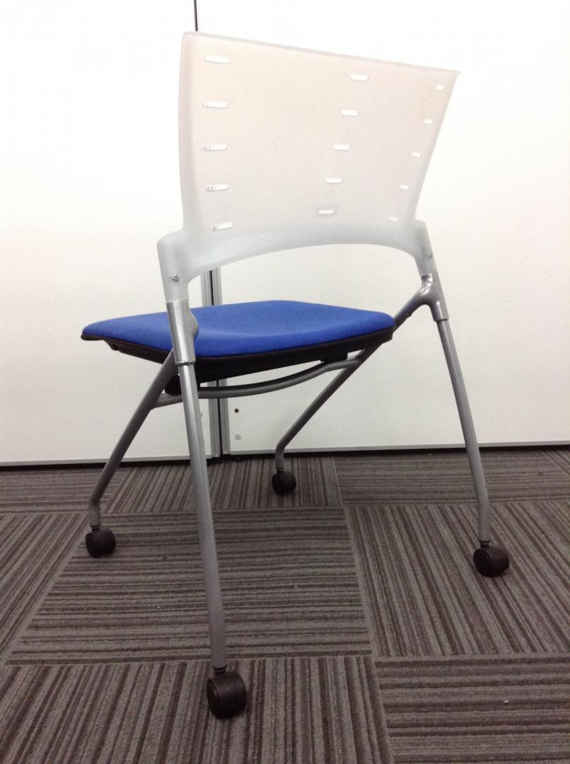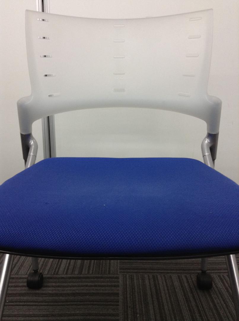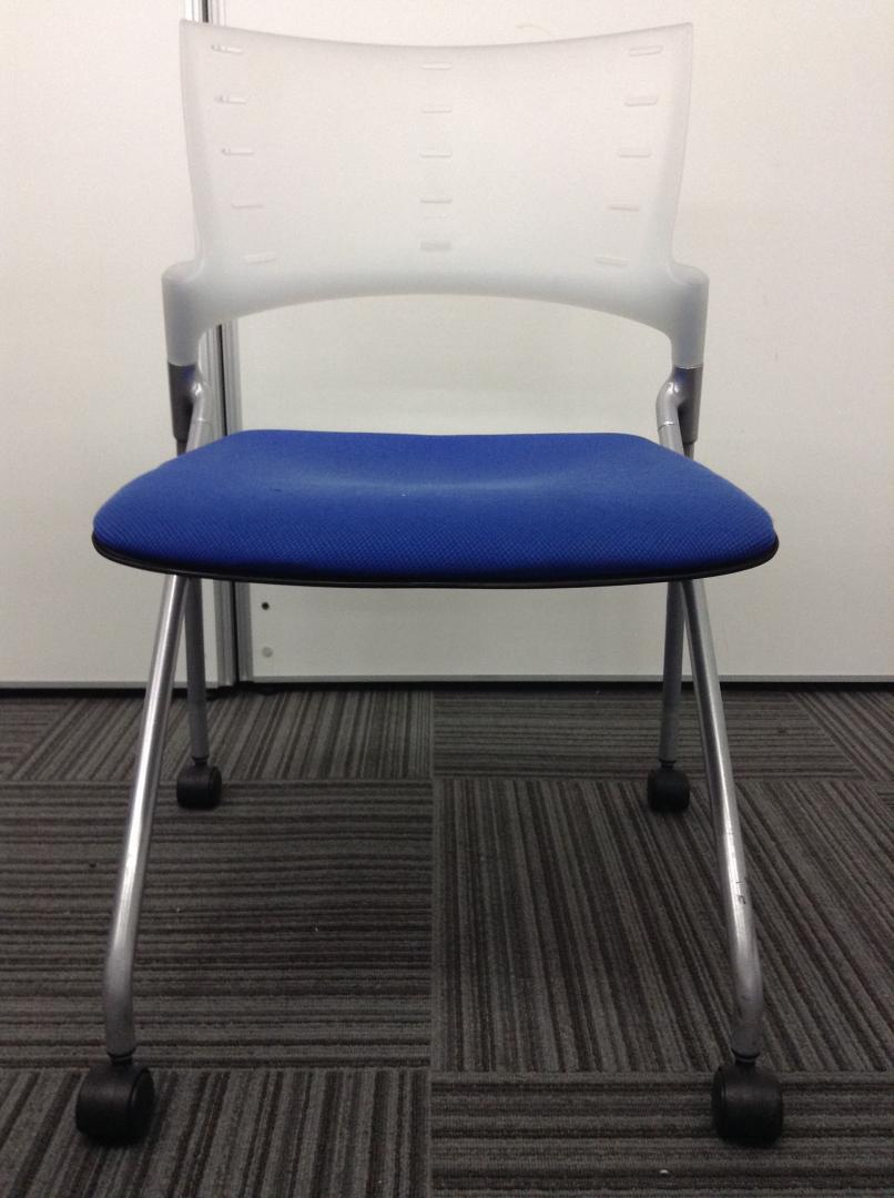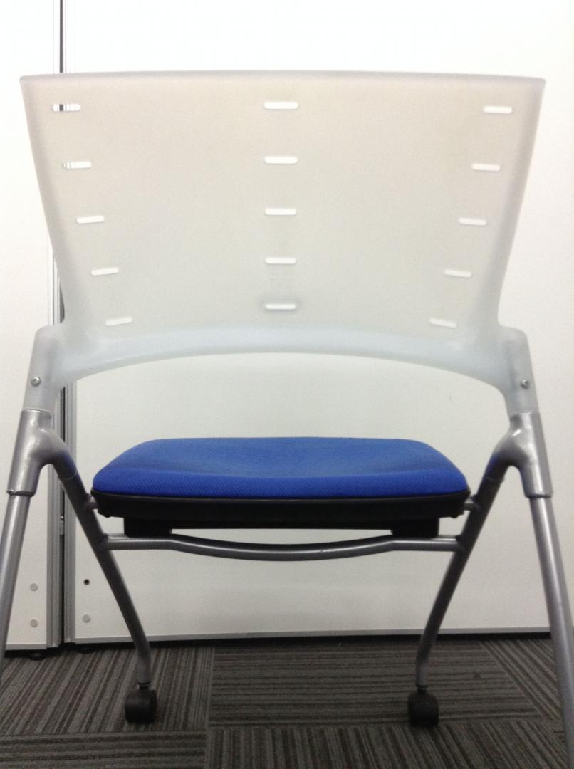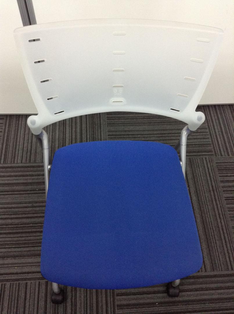 【定価6万円】【ソフトベンディングシェルが背を優しく受け止める!】■イトーキ(ITOKI) マノスチェア(MANOSS) 肘無し スタッキングチェア ミーティングチェア ■背パッド付 ■キャスター脚 ■ブルー