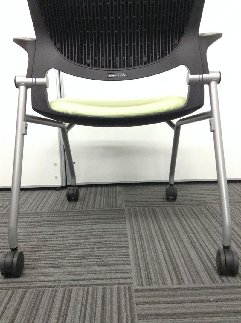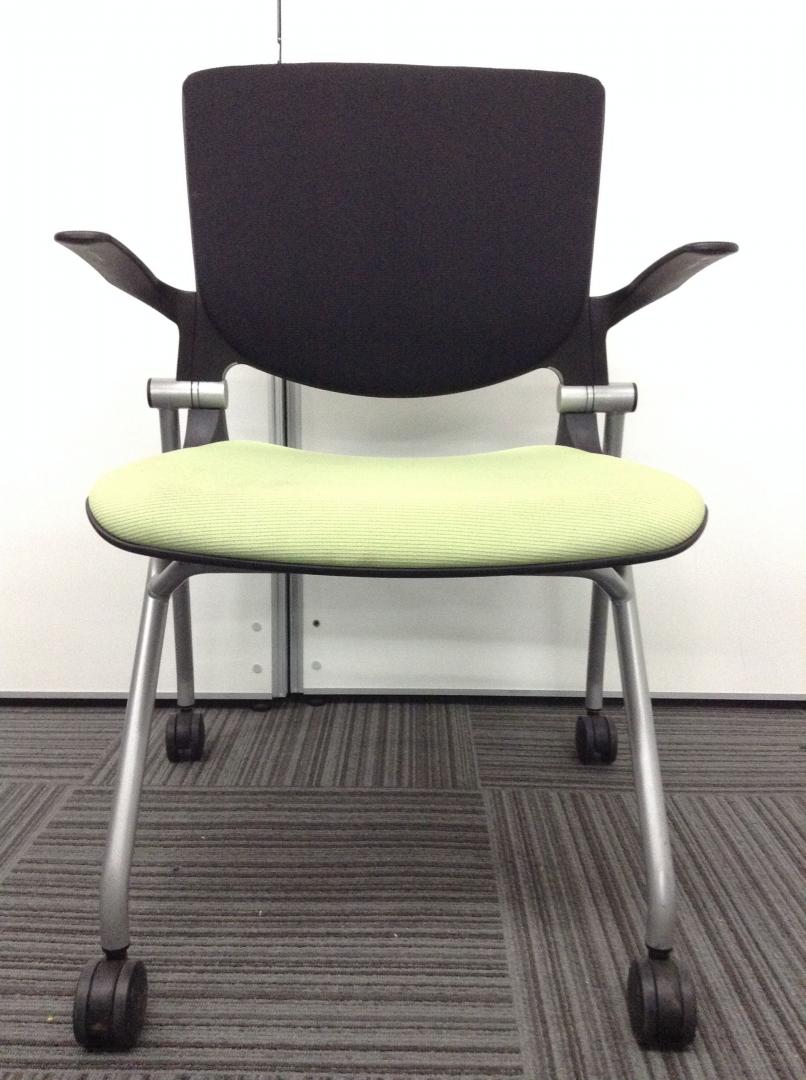 【18脚入荷】座面ライトグリーン×背面ブラック オカムラ製ネスティングチェア- 京都東寺店