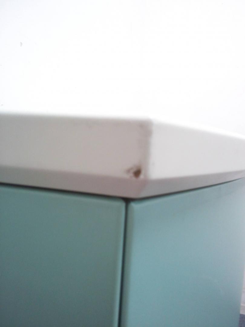 - かなり強い濃い黄ばみ・変色が商品全体にある。(例、天板、正面、背後、サイド部分にある。)