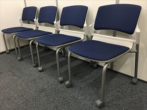 【残り2脚の為、お安く!】【キャスター付きで使いやすい!ミーティングに最適!】■ウチダ(UCHIDA)製 MF-180シリーズ スタッキングチェア ミーティングチェア ■キャスター付き ■レイズンブルー×ホワイトシェル