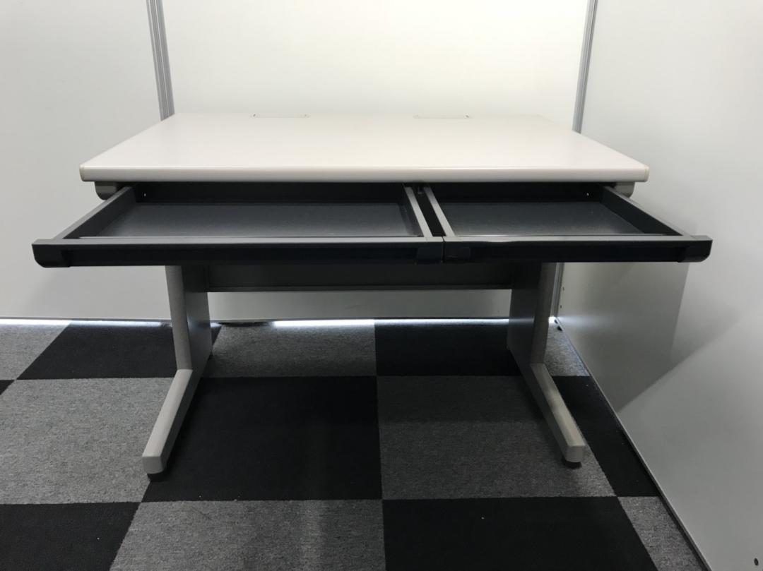 片袖机や両袖机のような大容量の収納能力はありませんが、天板下に薄いトレー型の引出しが付いております。