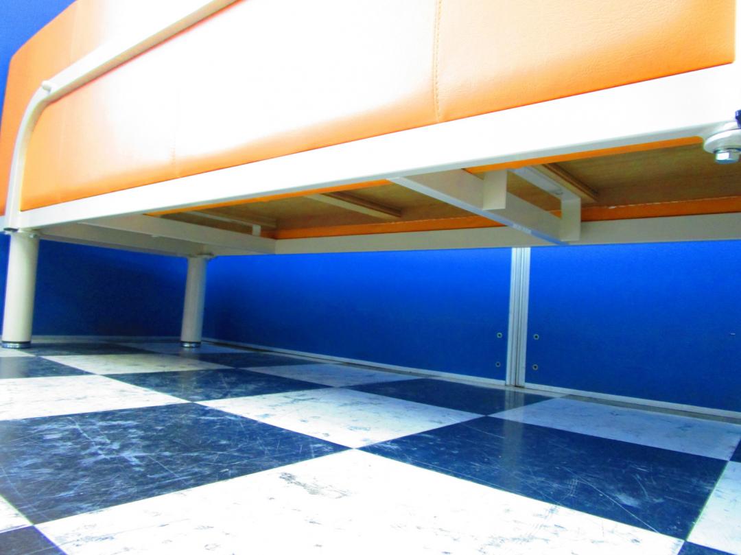 - かなり強い濃い黄ばみ・変色が商品全体にある。(例、座面・背もたれ、脚部等にある。)