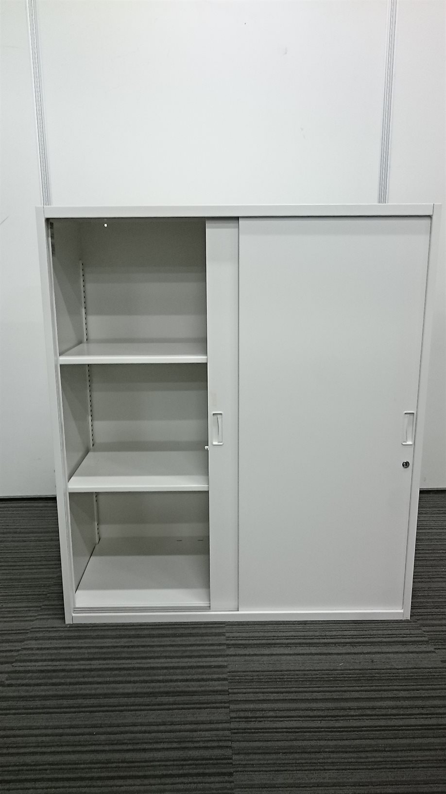 【イトーキ製の開閉スペースを確保した人気のキャビネット!】■3枚引き違いキャビネット ■イトーキ ■シンライン ■幅800mm×奥行き450mm×高さ1100mm 鍵付き書庫 オフィスバスターズ東大阪店