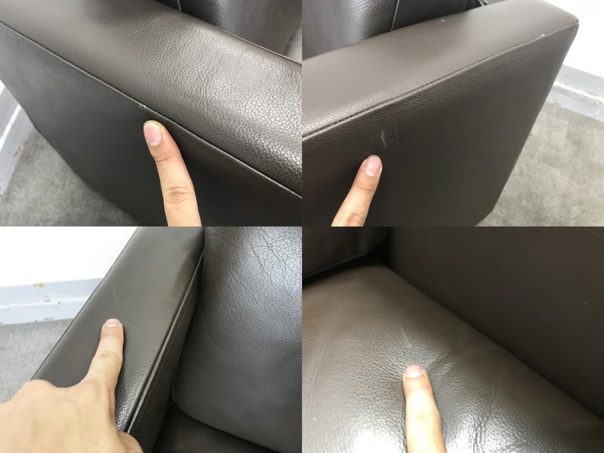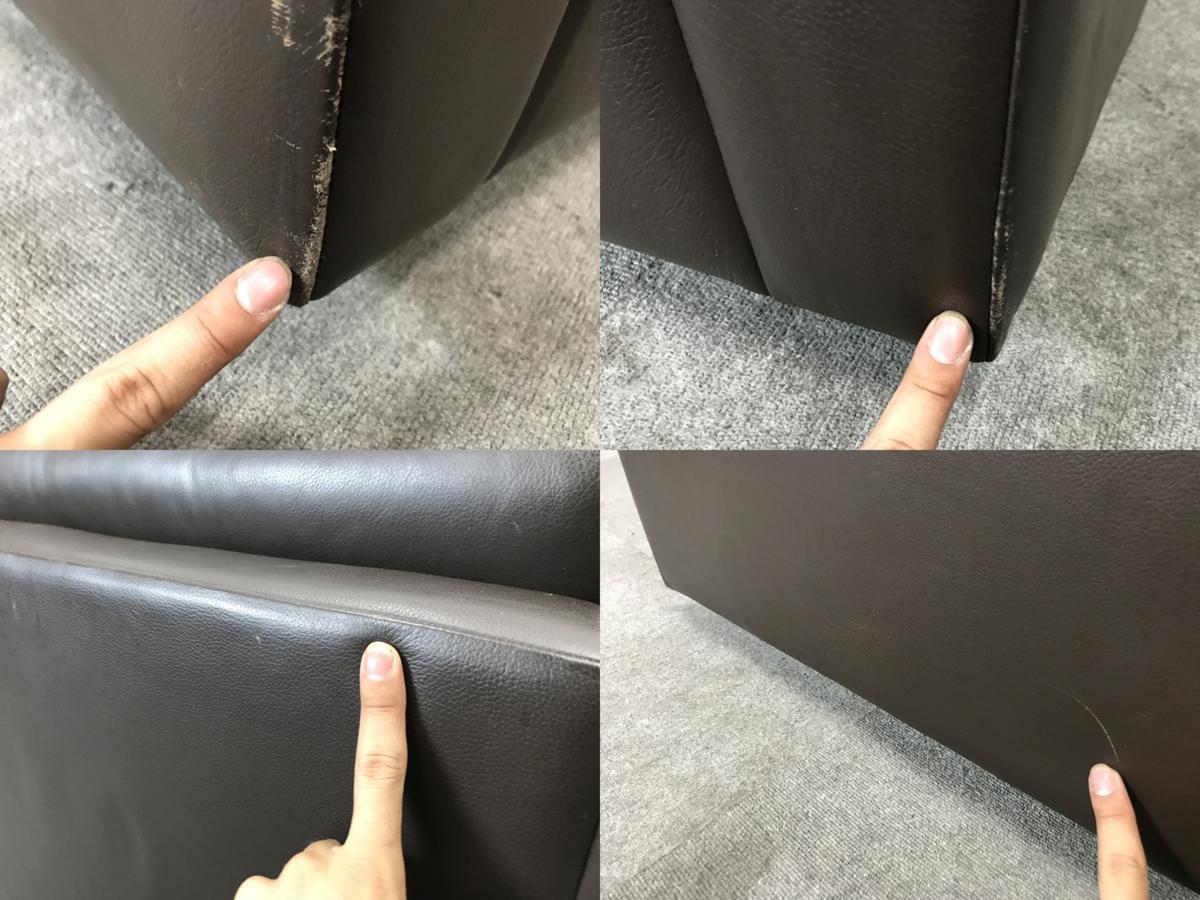 - 目立つ箇所ありソファの場合、破け、ホツレ、へたり、しわ等が多数または深い破け、ホツレ、へたり、しわ等一部ある。(例、背もたれ、肘かけ、座面等にある。)センタ>ーテーブルの場合、傷・凹みが多数または深い傷・凹みが一部ある。(例、天板、脚にある。)