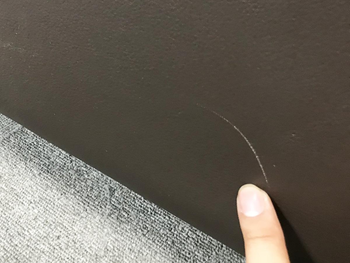 - あり黄ばみ・変色が広い範囲にうっすらある、または濃い黄ばみ・変色が一部ある。(例:三人用ソファ、二人用ソファ、一人用ソファの場合、背もたれ、肘かけ、座面等、 センターテーブルの場合、天板、脚にある。)