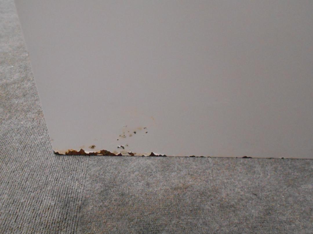 - かなり強い黄ばみ・変色が商品全体にある。(例、天板、正面、背部、サイド部分にある。)