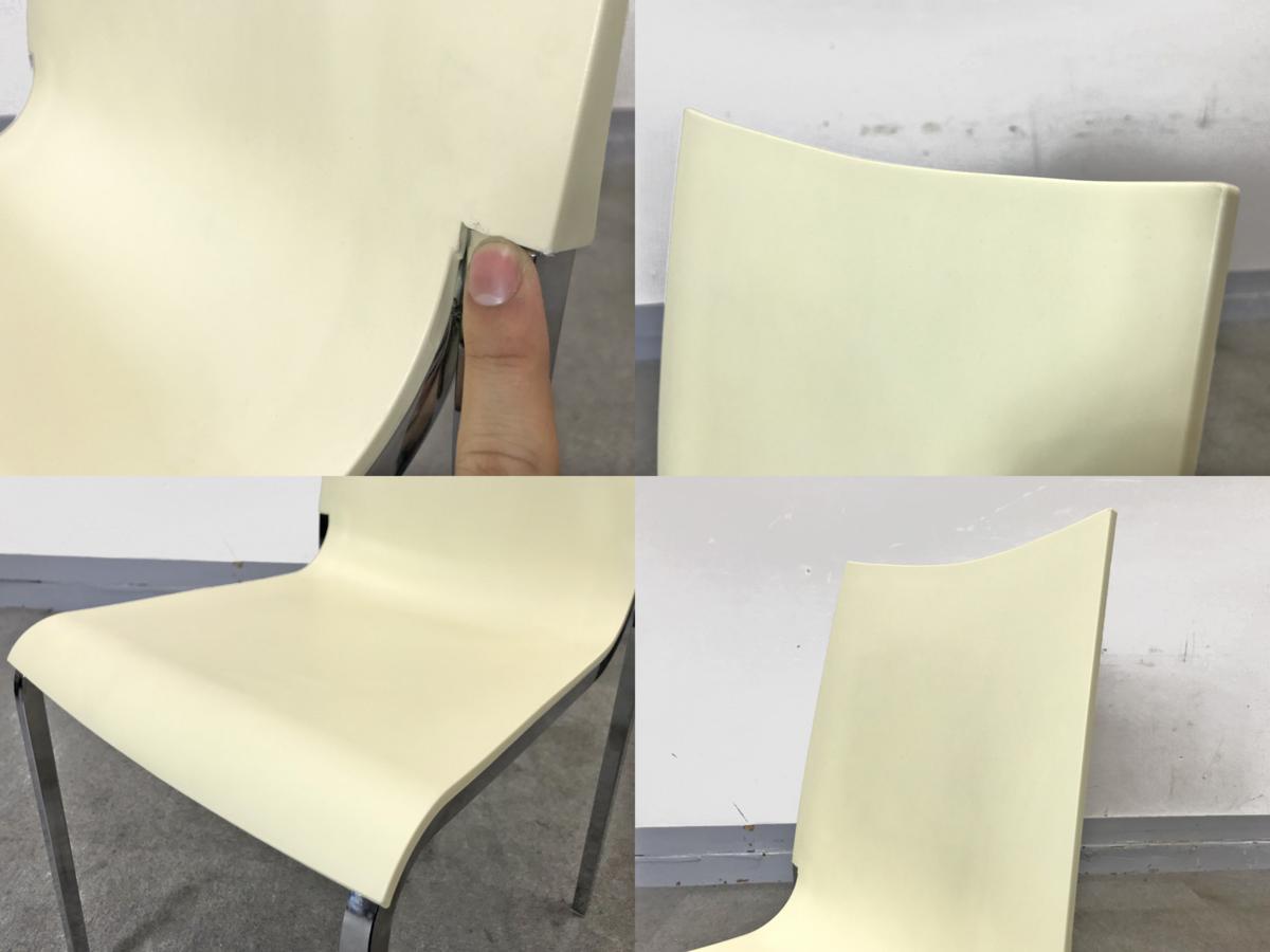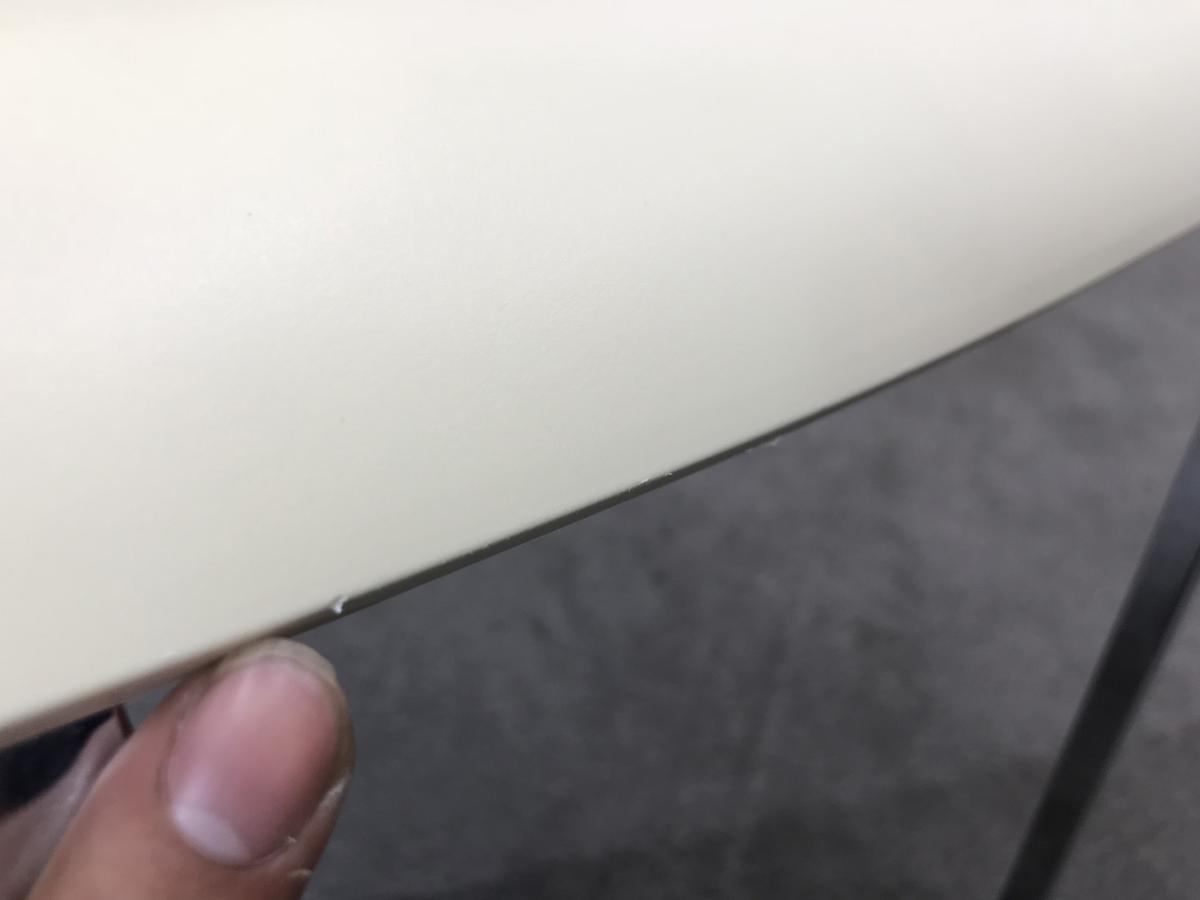 - かなり強い濃い黄ばみ・変色が商品全体にある。(例、座面・背もたれ、脚部等にある。)