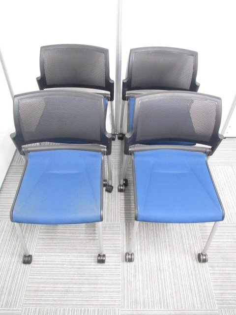 【4脚セット】【会議用に最適!】スタッキングチェア キャスター付き- 在庫数