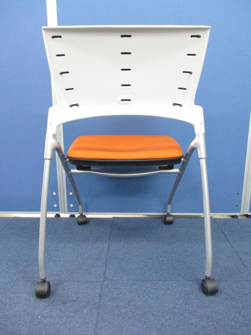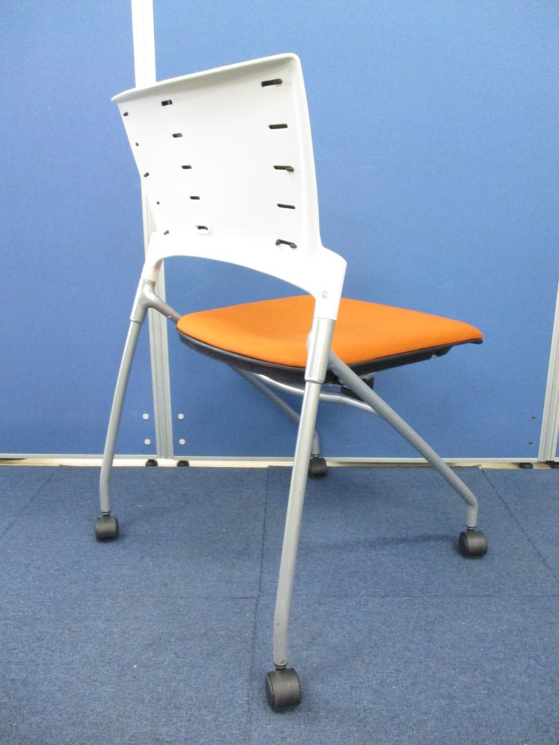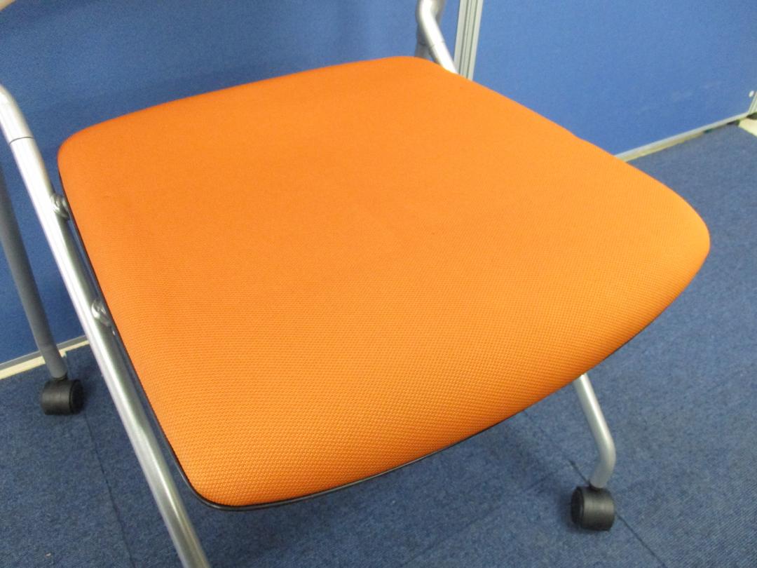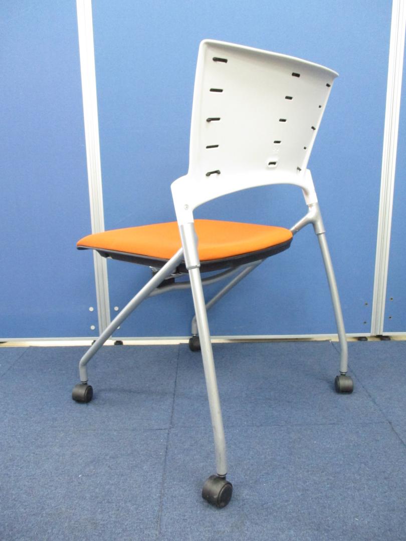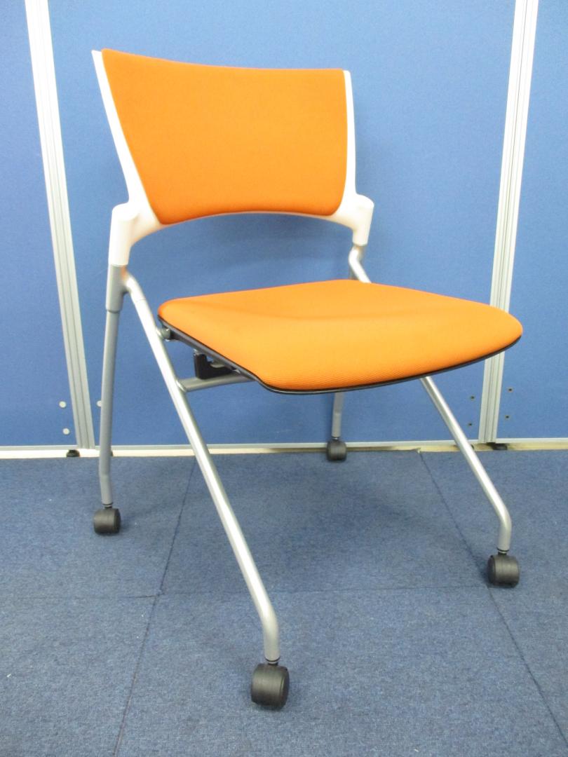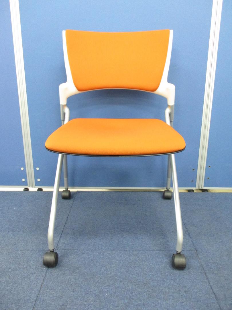 [疲労感の少ないやわらかい座り心地!!]イトーキ(ITOKI) マノスチェア オレンジ■畳んで収納可能、軽量で会議後の後片付けがスムーズです!![状態良好][ネスタブル]- 足立・葛飾店