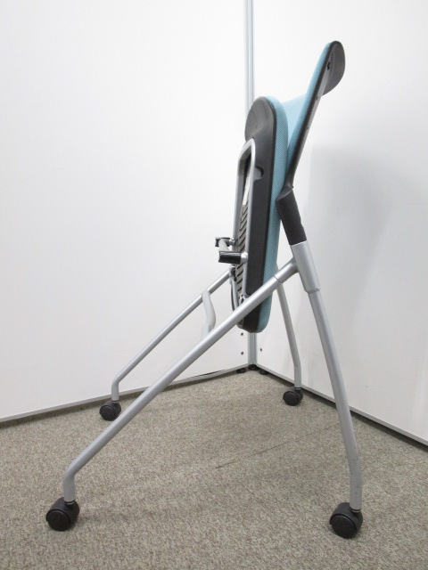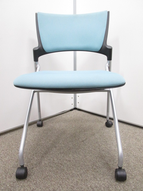【定価6万円】【ソフトベンディングシェルが背を優しく受け止める!】■イトーキ(ITOKI) マノスチェア(MANOSS) 肘無し スタッキングチェア ミーティングチェア ■背パッド付 ■キャスター脚 ■ブルー
