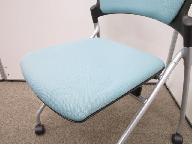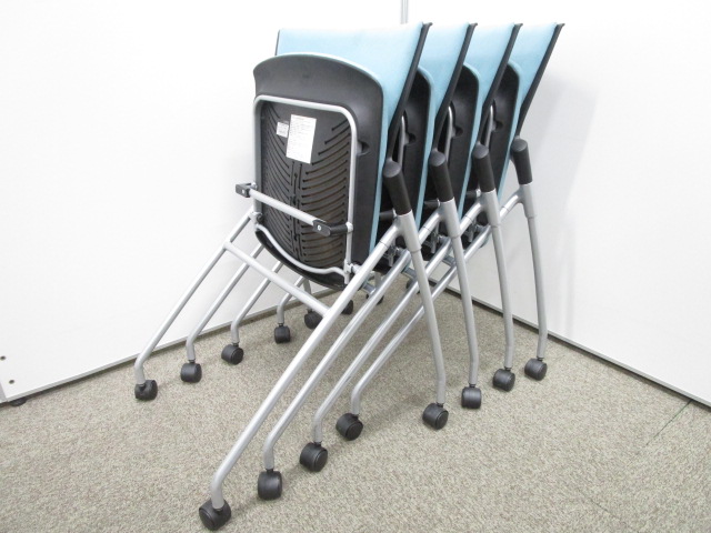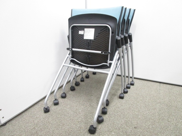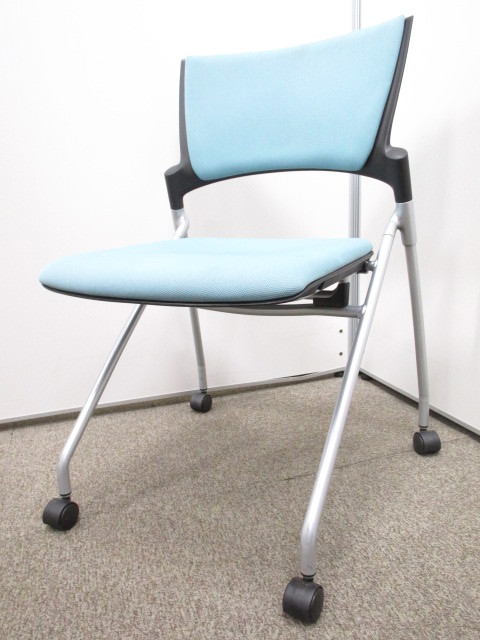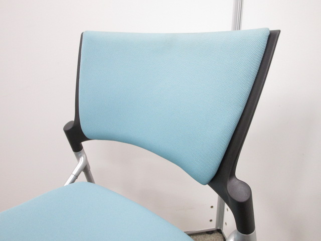 【定価6万円】【ソフトベンディングシェルが背を優しく受け止める!】■イトーキ(ITOKI) マノスチェア(MANOSS) 肘無し スタッキングチェア ミーティングチェア ■背パッド付 ■キャスター脚 ■ブルー