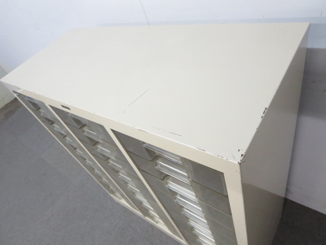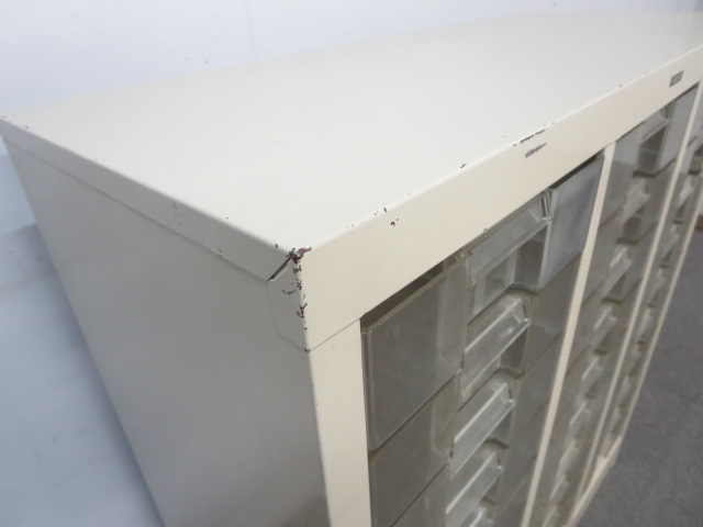 - 多数不具合あり引出の開閉不可、施錠不可、棚板無しといったその書庫の本来の効用を果たすための機能以外の多数が使用不可(例、扉、引出の開閉がしづらいなどがある。 )