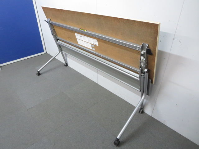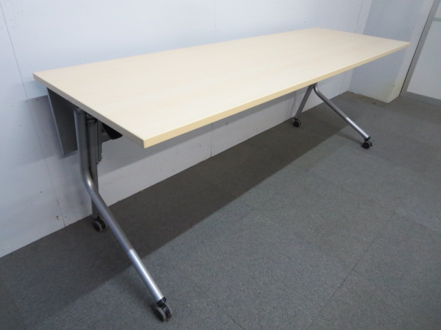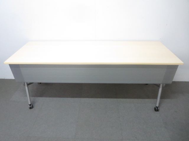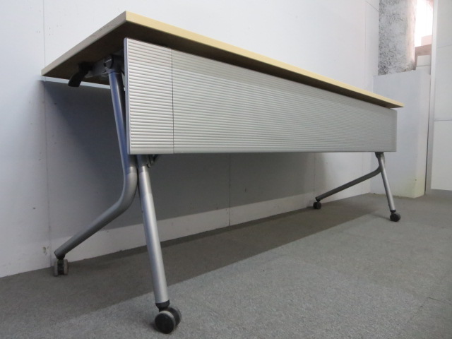 【※訳あり商品】■オカムラ製 サイドフォールドテーブル(幕板付)■ナチュラル W1800×D600mm【※キャスター劣化】- 川崎店