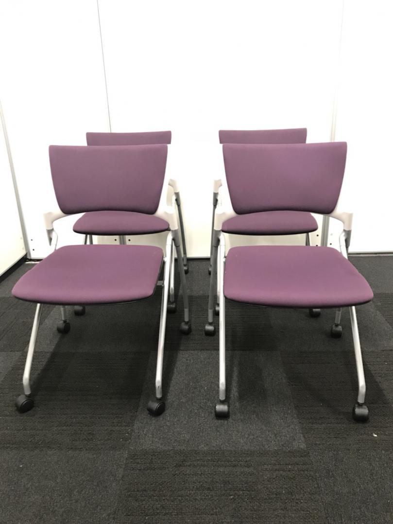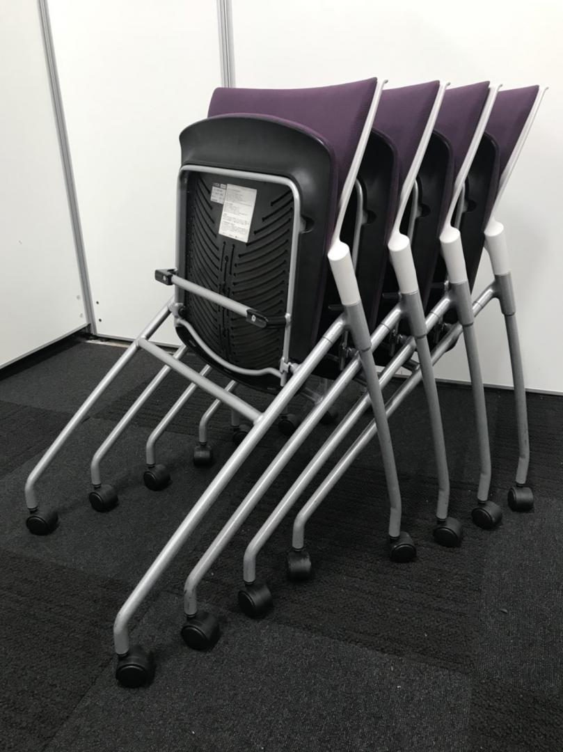 【4脚セットの為、10%OFF】座面跳ね上げ式、キャスター付の為、収納しやすいチェアです!- 立川・八王子店
