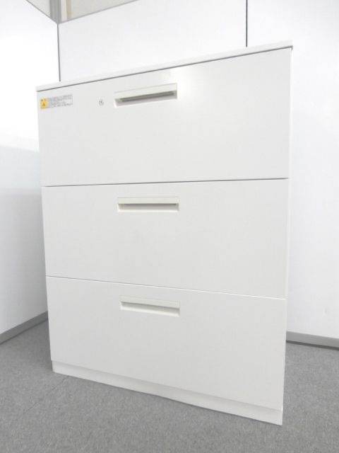 【人気の美しいホワイトカラー3段ラテラル書庫・天板付き】■内田洋行 ■3段ラテラル書庫 ■ホワイトカラー ■天板付き- 仙台店