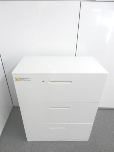 内田洋行製の3段ラテラル書庫天板付きになります。