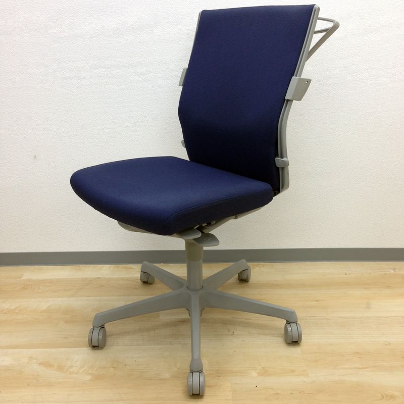 【人気チェア!肘無仕様でタイトにゆったり座れます!】オカムラ エスクード 肘無 ハイバック ネイビーブルー グレーシェル 人気 中古 福岡 九州最大級《オフィスバスターズ福岡博多店は、福岡を拠点として、日本全国へ中古オフィス用品・オフィス家具を提供しております》