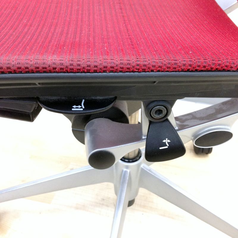 - 座面の右下にあるレバーの操作により座面位置を上下に100mm分調整することが可能です。