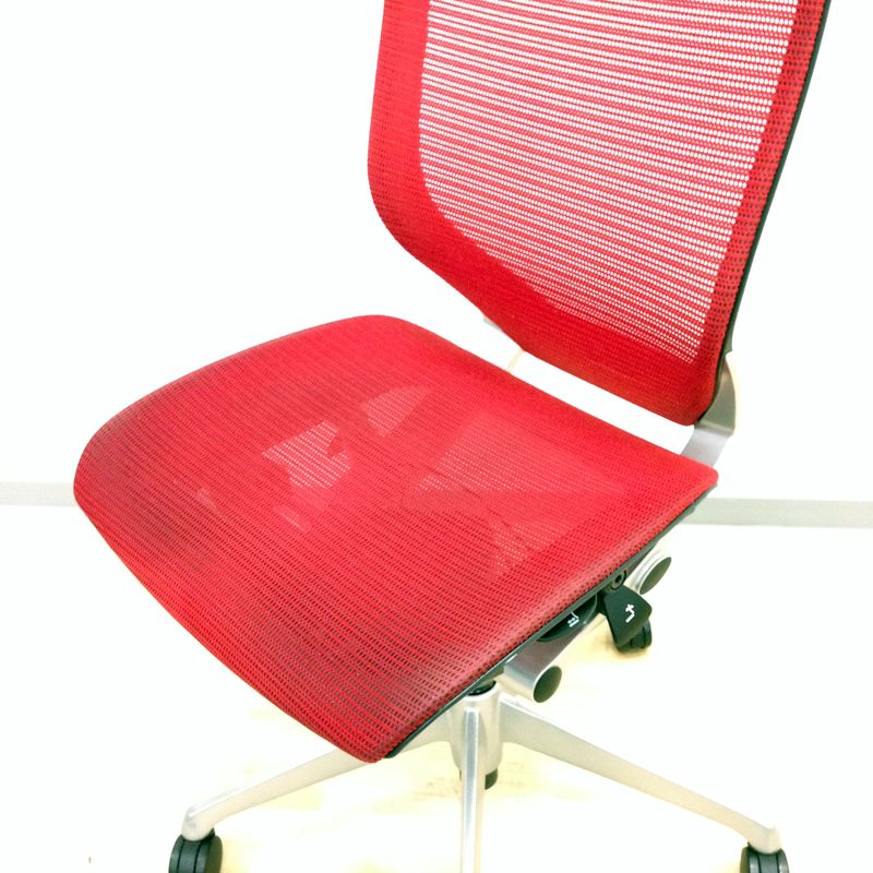 もちろん座り心地もコンテッサの直系ですから快適です。座面の素材はクッションとメッシュの2タイプあります。私、個人的には座面の中心部分でも外側でもテンションが変わらないクッション素材が、足を閉じても開いても快適なので推しです!"