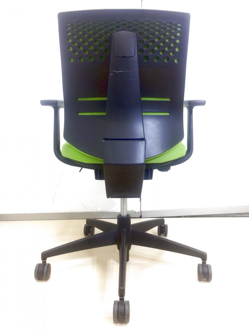 【関西倉庫在庫】コクヨ製 ウィザードシリーズ イエローグリーン 樹脂脚 固定肘 肘付きローバックチェア 【弊社使用欄: A01019819】