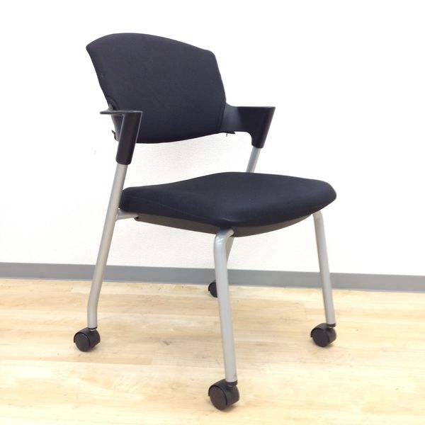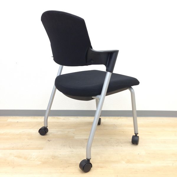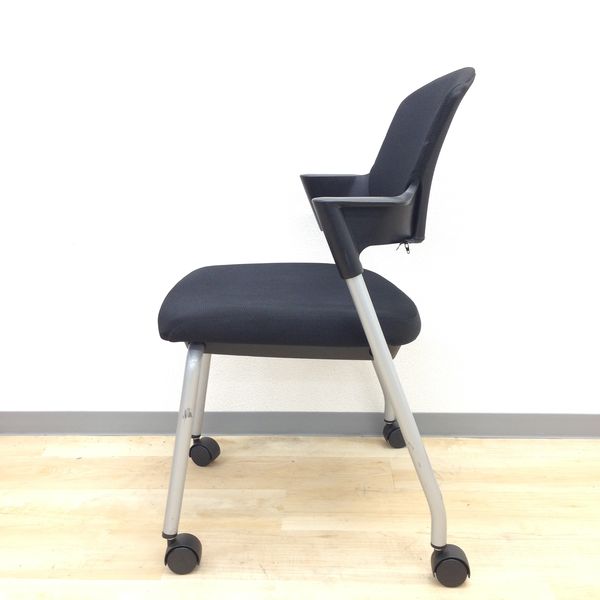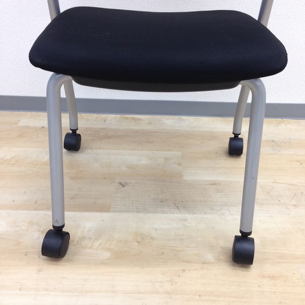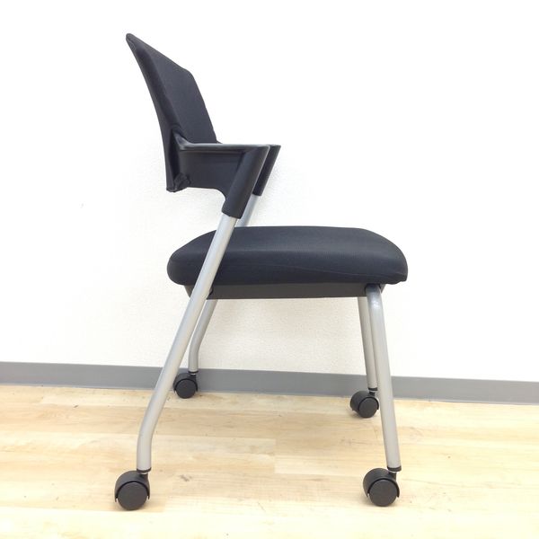 【シンプルスマートなスタッキングチェア!分厚いクッションで長時間でも快適な座り心地!】■スタッキングチェア 肘付ミーティングチェア ■固定肘 ■キャスター付 ■ブラック ■背面樹脂/コクヨ(KOKUYO/プロッティ