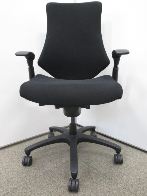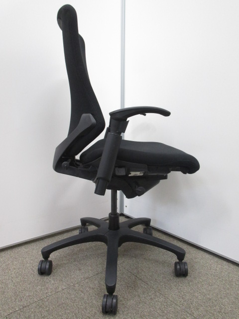 【三次元フォルムが腰にフィット!】希少なエラストマータイプ! ■イトーキ製 エフチェア 肘付 ブラック ハイバック ■姿勢の変化にフレキシブルに対応!