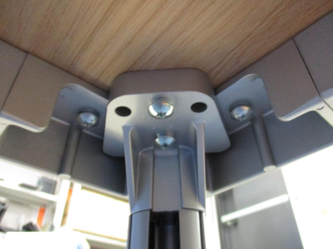 - 一部不具合あり天板歪み、アジャスター無し、キャスター使用不可ようなそのテーブルの本来の効用を果たすための機能以外の一部が使用不可な状態。(例、キャスターロッ ク機能使用不可、棚板無し等がある。)