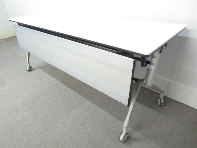 【折りたたみ収納が秀逸!スタイリッシュなデザインで高品質!】■オカムラ(okamura)製 インターアクトNTシリーズ(INTER ACTNT) サイドスタックテーブル W1500×D600×H720mm ■キャスター付 ■ホワイト