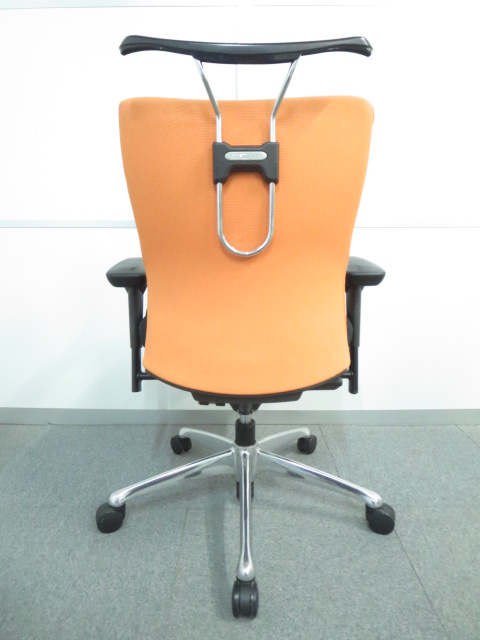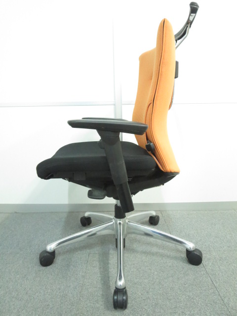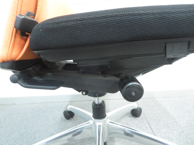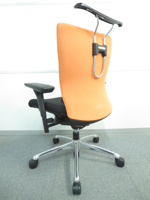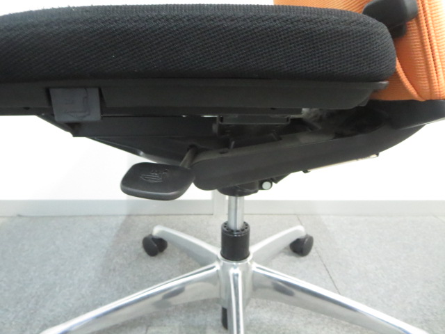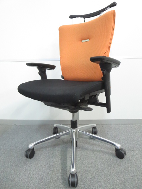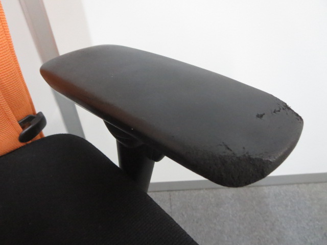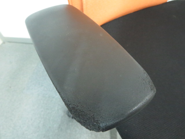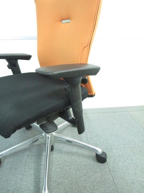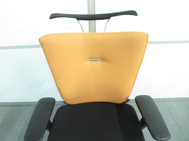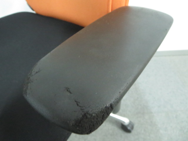 ■オカムラ製 フィーゴチェア 可動肘付 ■オレンジ ハンガー付 ■在庫入替に伴いお買い得!【β】- 川崎店