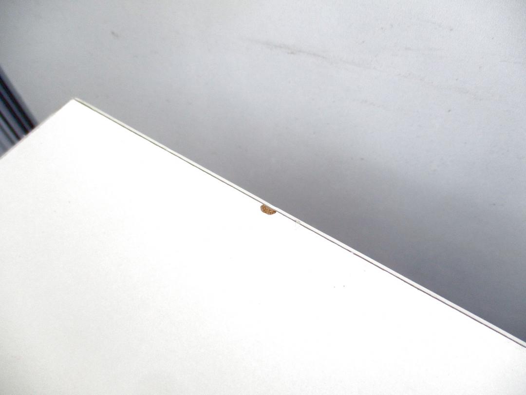 - あり黄ばみ・変色が広い範囲にうっすらある、または濃い黄ばみ・変色が一部ある。(例、天板、幕板、棚板、サイド部分、脚部等にある。)
