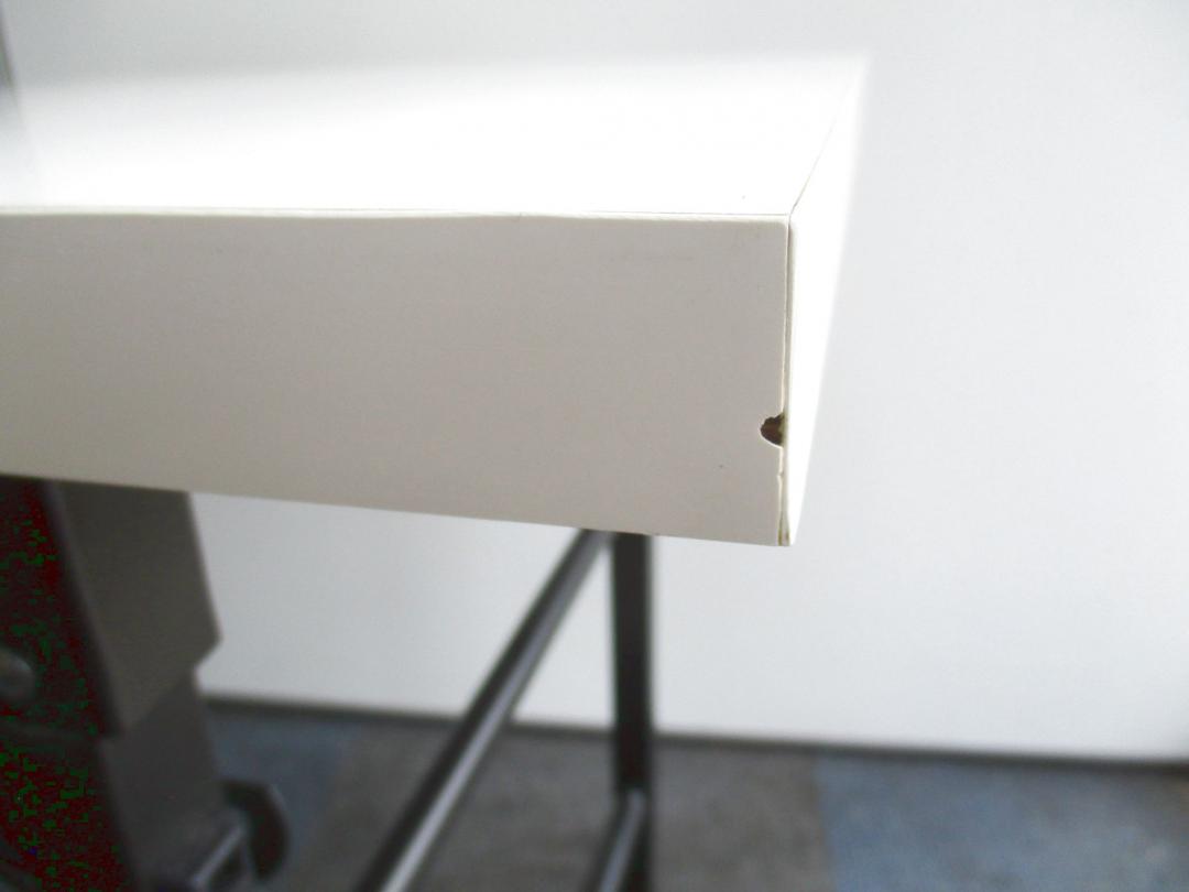 - 壊れている天板歪み、アジャスター無し、キャスター使用不可のようにそのテーブルの本来の効用を果たすための機能に不具合がある。