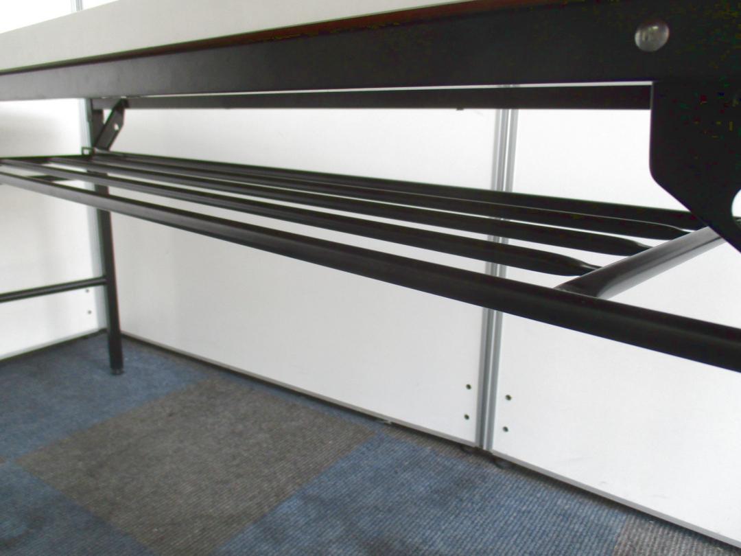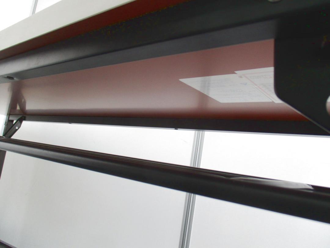 - 一部不具合あり天板歪み、アジャスター無し、キャスター使用不可ようなそのテーブルの本来の効用を果たすための機能以外の一部が使用不可な状態。(例、キャスターロッ ク機能使用不可、棚板無し等がある。)