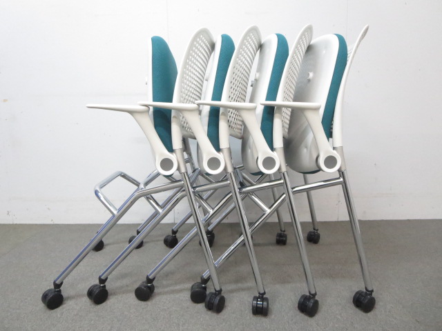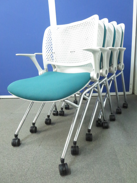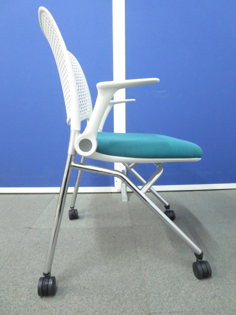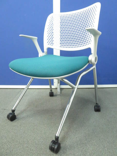 【キレイでお得な未使用品入荷!】■ネスティングチェア グリーン ■リラックスできる肘付【UCHIDA BLUME】- 川崎店