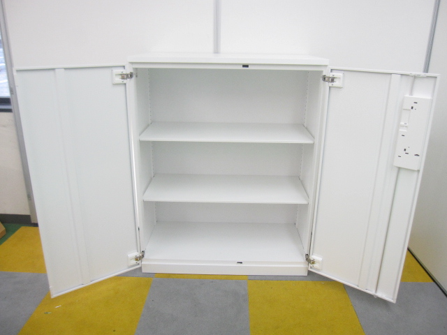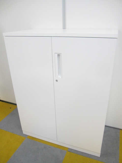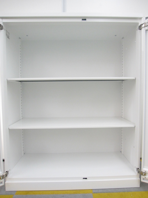 【収納物がひとめで分かる両開き戸タイプ!】■コクヨ(KOKUYO)製 エディア(EDIA)シリーズ 両開き書庫 ローキャビネット H1130㎜ ■天板・ベース付 ■ホワイト ■シリンダー錠【IB】