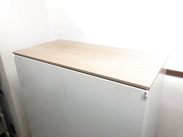 ナチュラル天板付きのホワイト色の書庫となります。