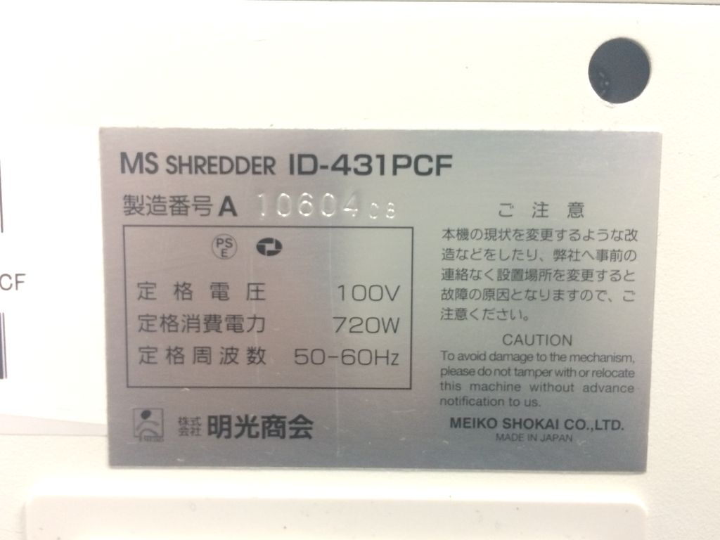 【中古】 MS-ID431PCF 明光商会 シュレッダー 229459