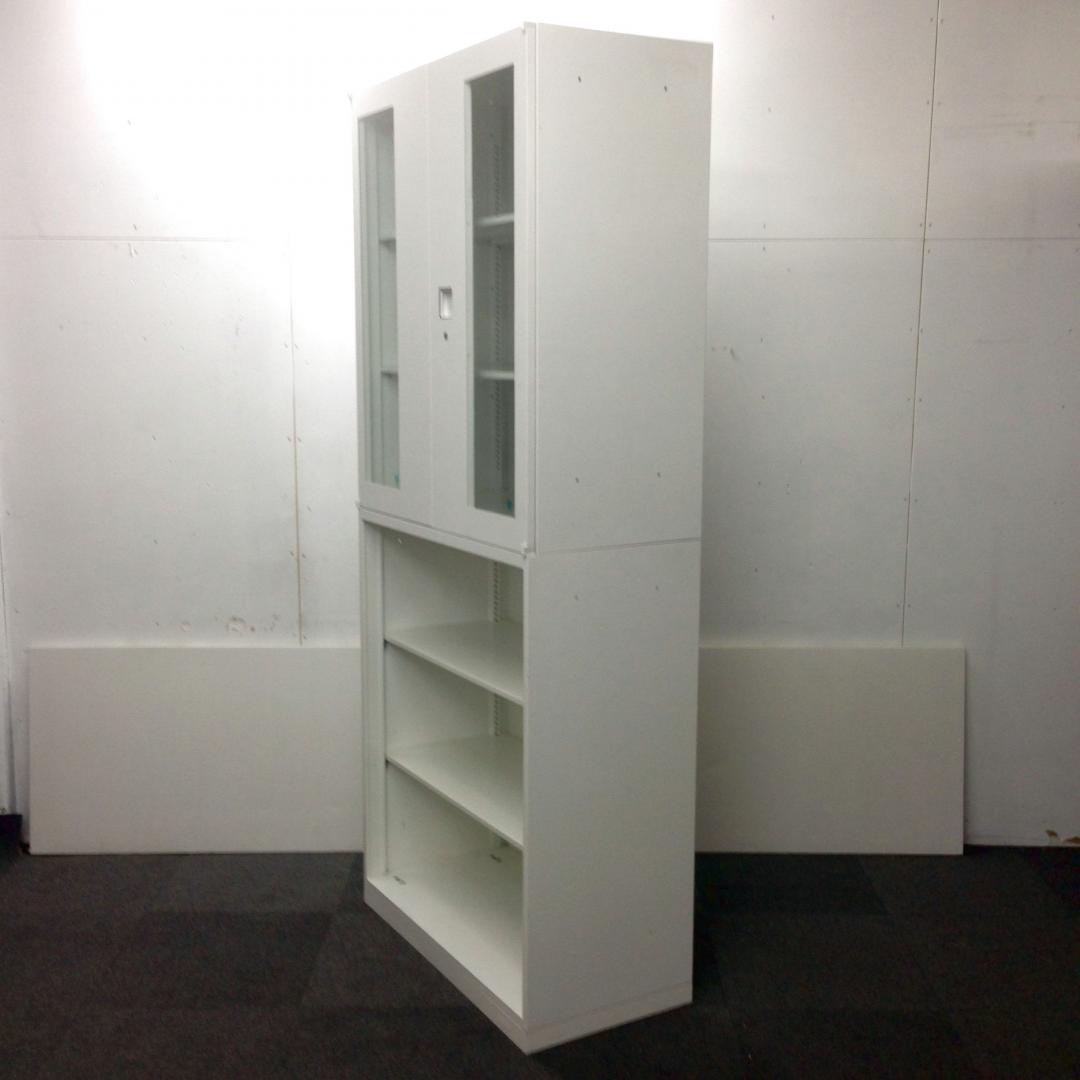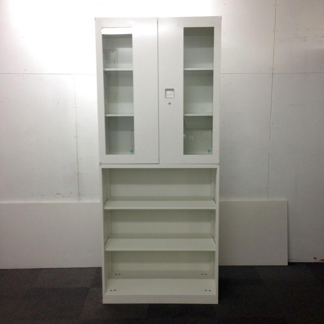 使い勝手抜群の上下書庫セット!上段両開き+下段オープン仕様! ■オカムラ/レクトライン/ホワイト