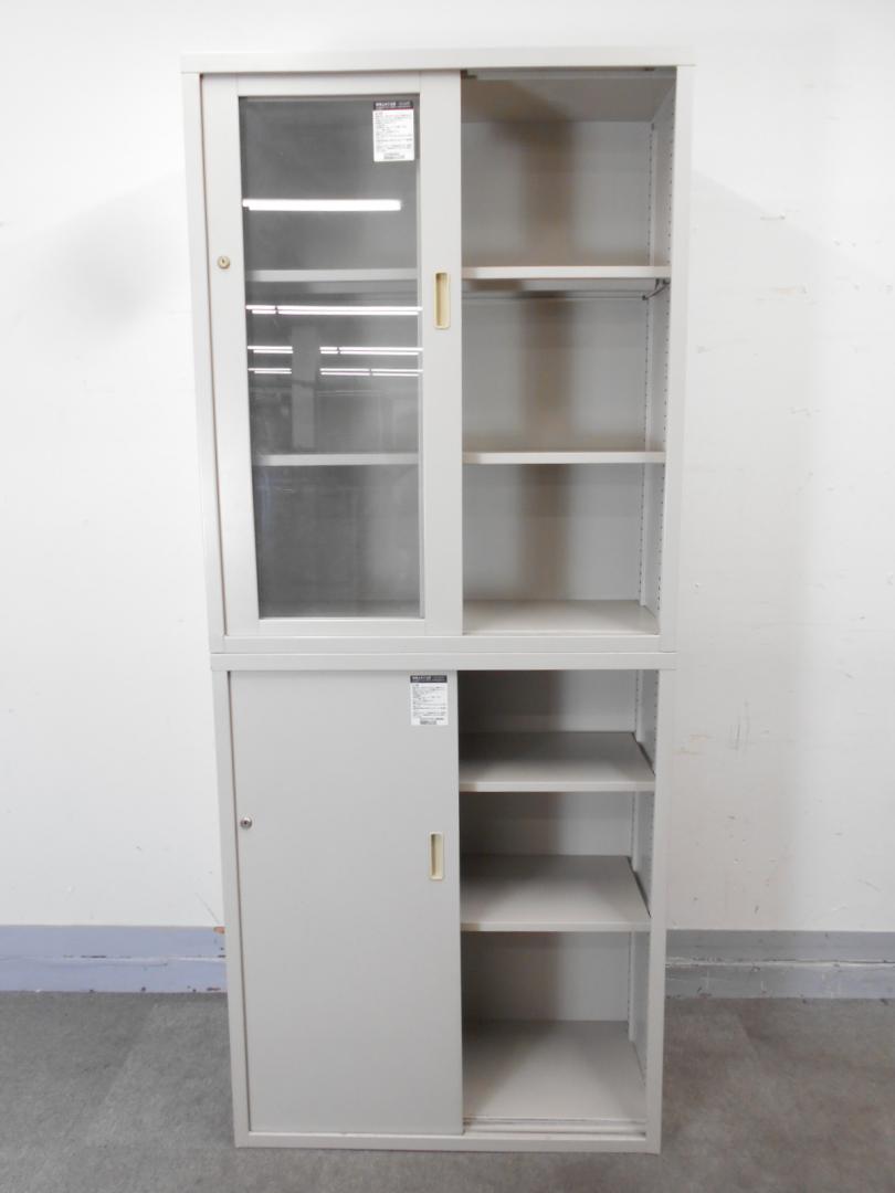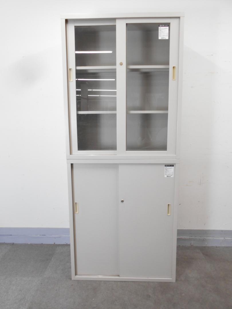 【KS】[四台入荷]中古では珍しいガラス引き違い書庫セット 資料が見やすい![鍵作成可能][ベースなしのためお安めです!]- 茨城南店