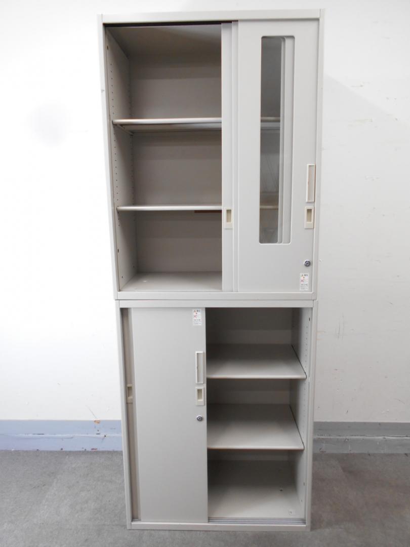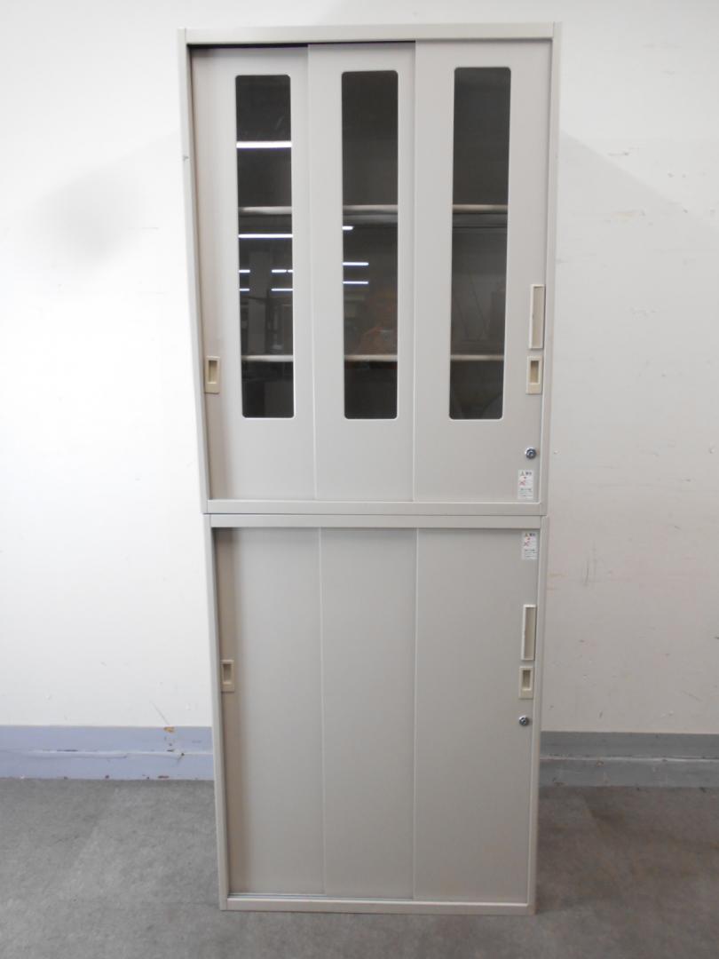 【KS】[激レア品]上段ガラスの三枚引違書庫セット W800のスリムタイプ [ベース無なのでお安くご提供!][鍵作成可能]- 茨城南店