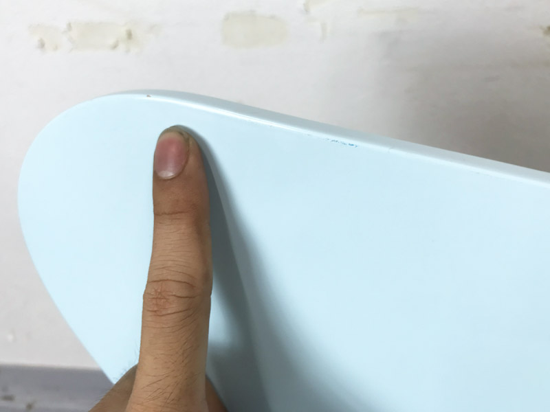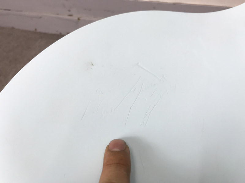 - かなり強い濃い黄ばみ・変色が商品全体にある。(例、座面・背もたれ、脚部等にある。)