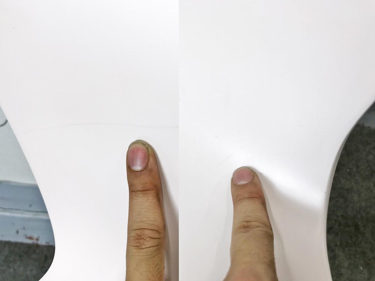 - 目立つ箇所あり傷・破れ・ほつれ・へたり・しわが多数または深い傷・破れ・ほつれ・へたり・しわが一部ある。※座面・背もたれ、シェル、脚部等にある。