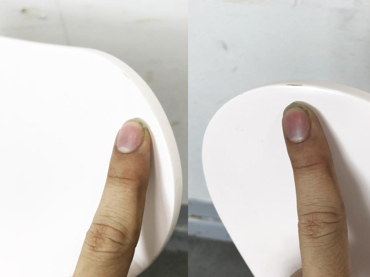 - かなり強い濃い黄ばみ・変色が商品全体にある。(例、座面・背もたれ、脚部等にある。)
