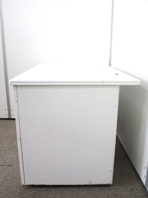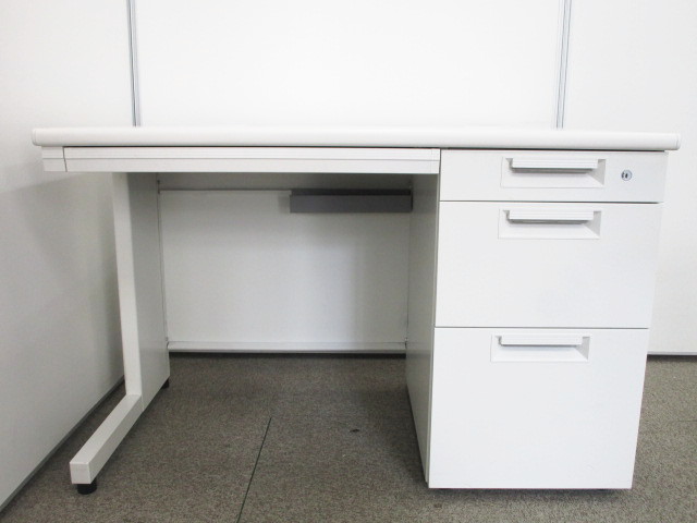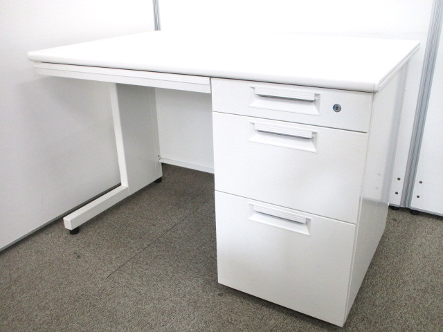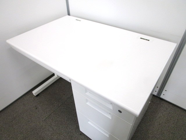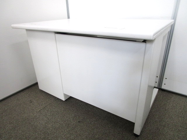 【シンプルなホワイト片袖机!】幅1100mmのコンパクトサイズ!起業や増員の際にはこちら!【配線カバー欠品】- 池袋店